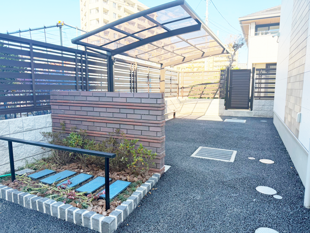 【施工事例】八王子市にて、分譲住宅Aの外構リフォーム工事を行いました。【駐輪場工事】